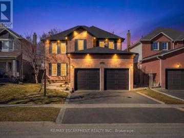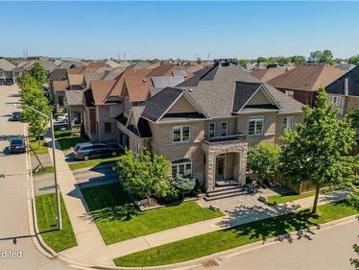 Welcome to this stunning family home in Burlington’s prestigious Alton Village, set on a premium corner lot that fills the home with natural light. Designed for modern family living, this home blends elegance, comfort, and functionality—highlighted by a truly exceptional backyard oasis. From the moment you arrive, the curb appeal stands out with a stone walkway, stone and brick façade, manicured gardens, and landscaping. Inside, the main floor offers 9ft ceilings and an open-concept layout with hardwood floors, pot lights, crown mouldings, and wainscotting throughout. The bright living room features oversized windows, while the upgraded chef’s kitchen is the heart of the home—complete with granite countertops, tile backsplash, custom cabinetry, SS appliances, gas stove, wall oven, and a breakfast nook with walkout to the backyard. The inviting family room showcases a gas fireplace and built-in media wall, complemented by a formal dining room, convenient laundry, and powder room. Upstai
