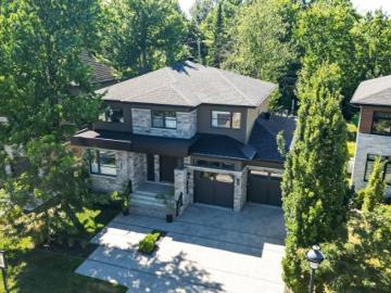 Stunning high-end residence, set on a spacious southwest-facing corner lot, offering exceptional natural light throughout the day. Fully renovated in 2022 with over $700,000 invested, this turnkey property showcases spectacular living spaces and impeccable finishes throughout. Ultramodern kitchen with high-end appliances and walk-in pantry featuring a Sub-Zero refrigerator Open-concept living area with cathedral ceiling and fireplaces 3 generously sized bedrooms, each with a private full ensuite bathroom, heated floors, and large walk-in closets. Fully finished basement: home theatre, billiard room, wine cellar, fireplace, bedroom, and bathroom